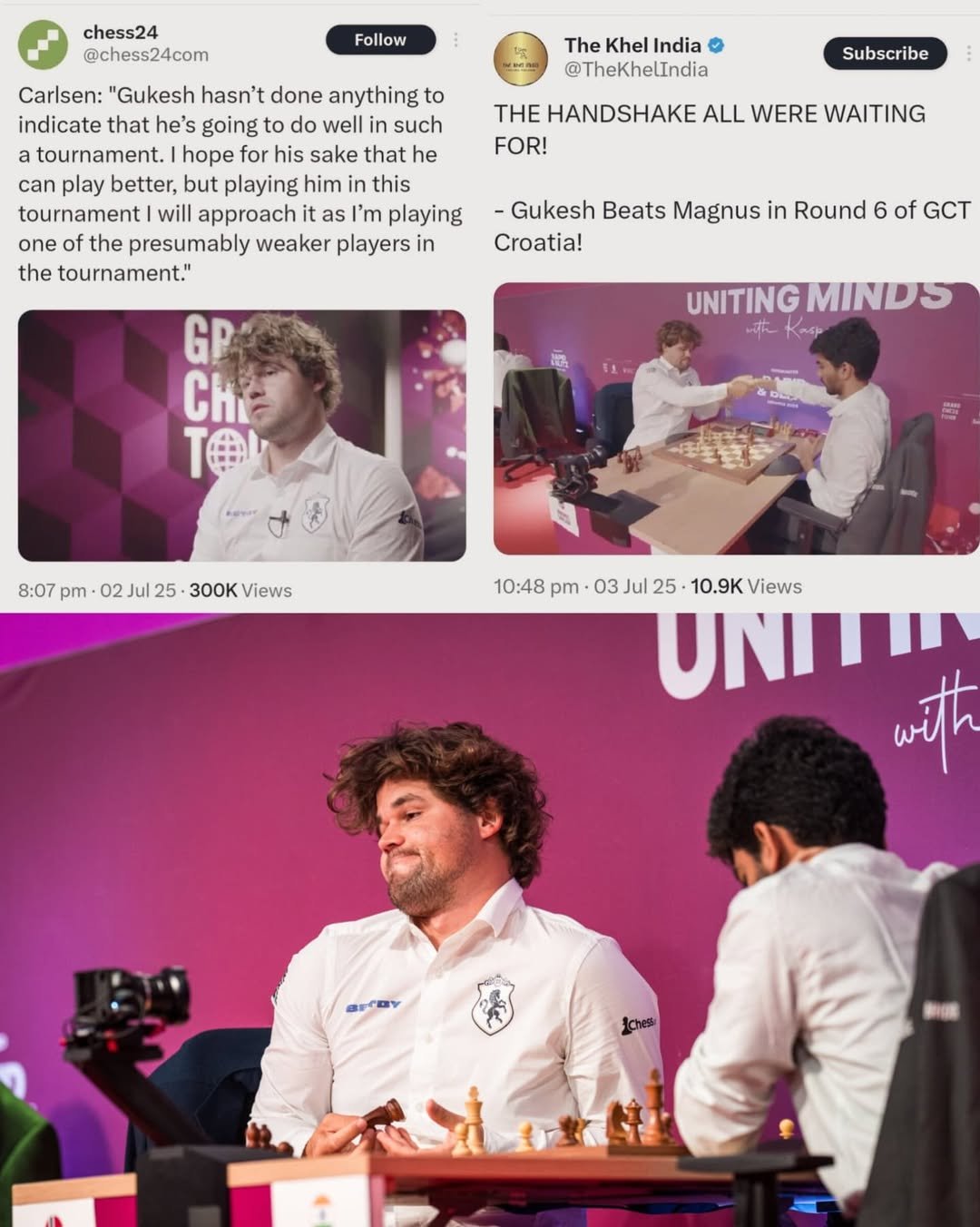 कुछ दिन पहले ही कार्लसन ने गुकेश को “संभवतः कमजोर खिलाड़ियों में से एक” कहा था, जिससे काफी विवाद हुआ था। लेकिन अब गुकेश ने शतरंज की बिसात पर ही इसका सटीक जवाब दे दिया है।