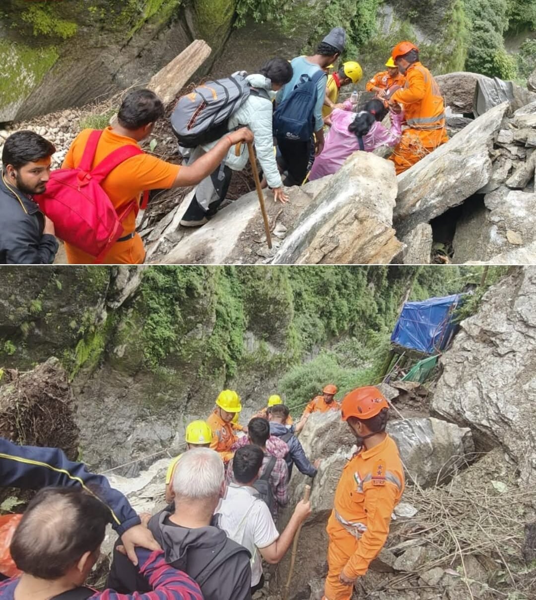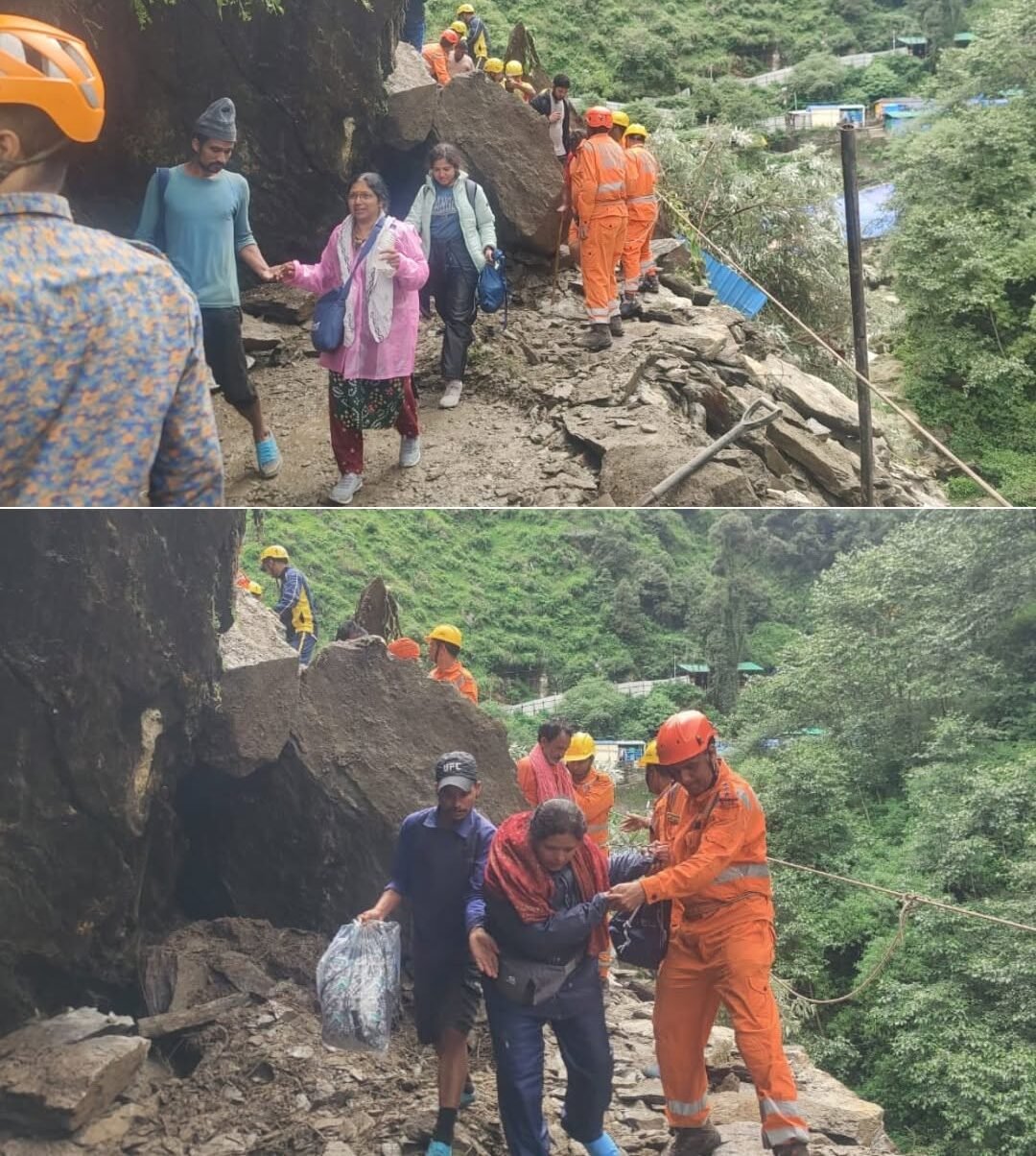 भारी बारिश से गौरीकुंड के पास केदारनाथ यात्रा मार्ग बाधित, यात्री सुरक्षित मार्गदर्शन में लौट रहे वापस