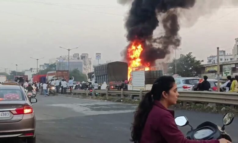 दमकल विभाग की कई पानी के टैंकरों के साथ टीमें मौके पर पहुंचीं और आग पर काबू पाने में जुट गईं। हादसे की वजह से हाईवे पर लंबा जाम भी लग गया, जिससे यातायात प्रभावित रहा।