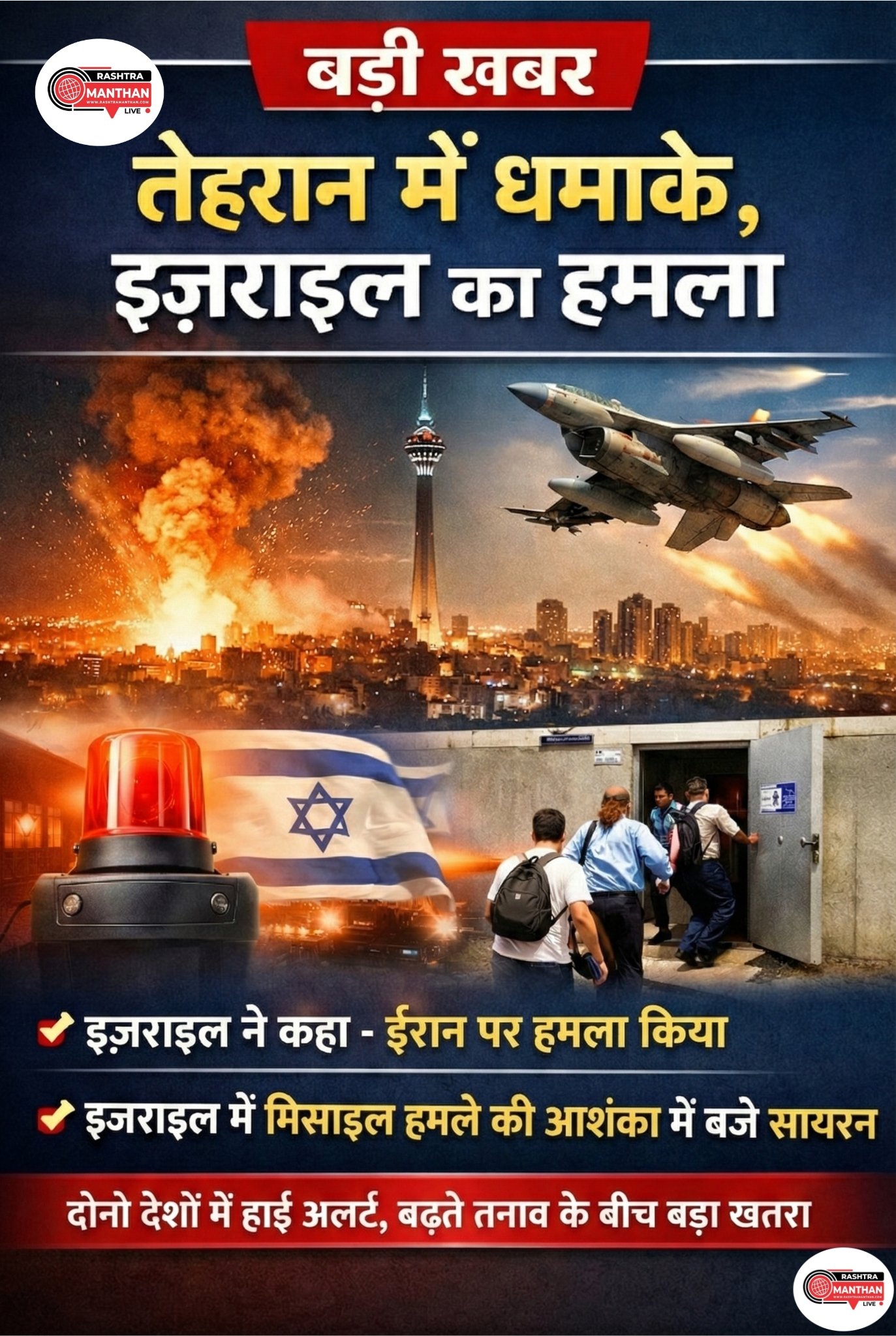 तेहरान में धमाकों की आवाजें, इज़राइल ने ईरान पर हमले की पुष्टि की; इज़राइल में भी सायरन बजे