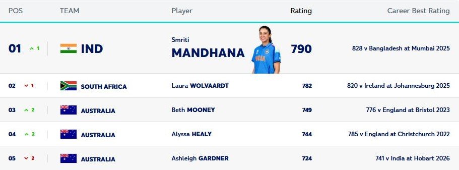 आईसीसी की इस ताजा रैंकिंग ने महिला क्रिकेट में प्रतिस्पर्धा को और भी रोचक बना दिया है।