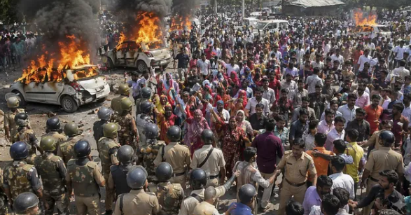 नोएडा/नई दिल्ली: वेतन वृद्धि की मांग को लेकर नोएडा के फेज-2 औद्योगिक क्षेत्र में श्रमिकों का प्रदर्शन सोमवार को अचानक उग्र हो गया। हजारों मजदूर सड़कों पर उतर आए और हालात इतने बिगड़ गए कि पुलिस की गाड़ियों समेत पांच वाहनों में आग लगा दी गई, साथ ही कई जगह पथराव और तोड़फोड़ की घटनाएं सामने आईं। प्रशासन ने भारी पुलिस बल तैनात कर स्थिति को नियंत्रण में लिया।