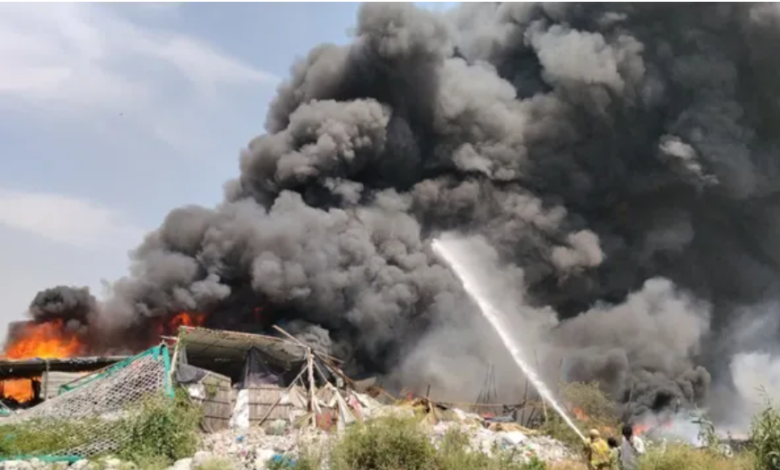 गाजियाबाद: कनावनी पुलिया के पास कबाड़ के गोदाम में भीषण आग, इलाके में मची अफरातफरी