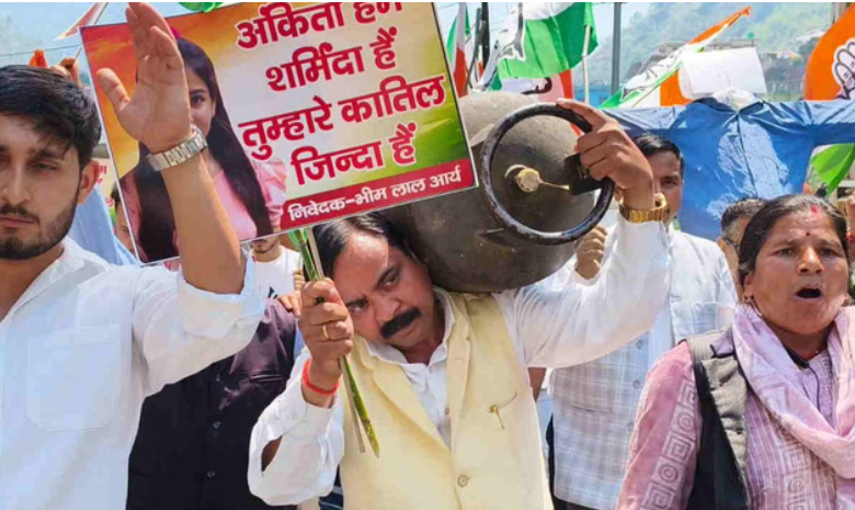 टिहरी: घनसाली में गैस किल्लत पर फूटा गुस्सा, पूर्व विधायक ने खाली सिलिंडर कंधे पर रखकर किया प्रदर्शन